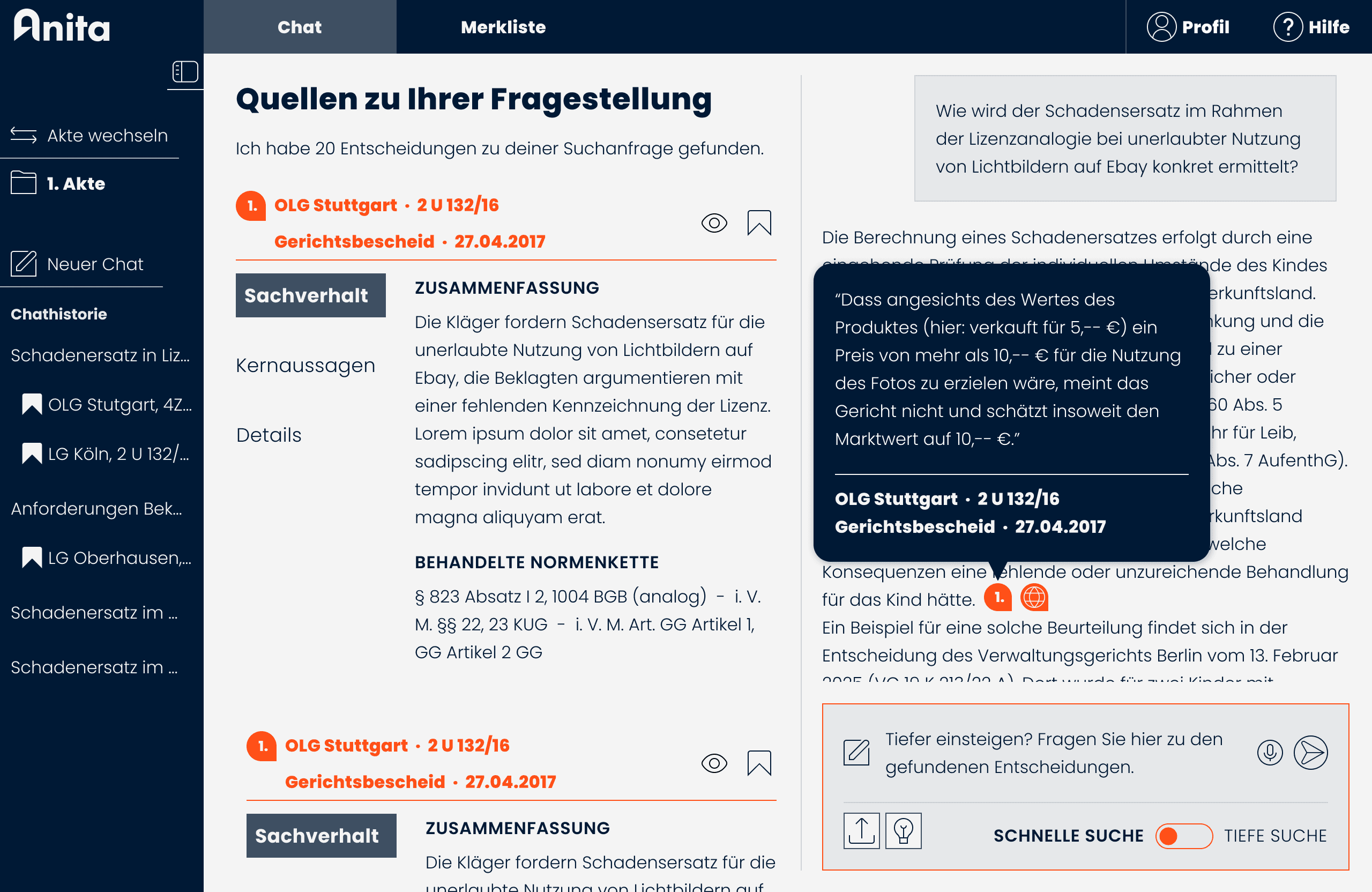 When the limitations of document extraction became fully visible, the team recognized that a different approach was needed. An approach that could provide clarity without relying on perfectly structured texts. At the same time, the company underwent a major transformation: the former brand Iur.Crowd evolved into Anita, a new identity centered around radical simplicity in this complex information network of legal reserach.