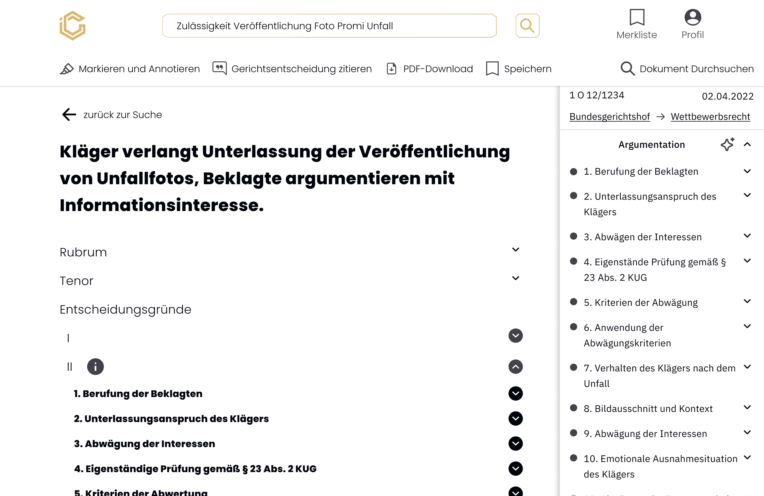 After improving the search interaction, our next step was to help users work more effectively within the court decisions themselves. At this time, the team pursued an ambitious idea: to extract the logical structure of each decision, break the judicial reasoning into discrete argument segments, and present these segments in a dedicated navigation bar.